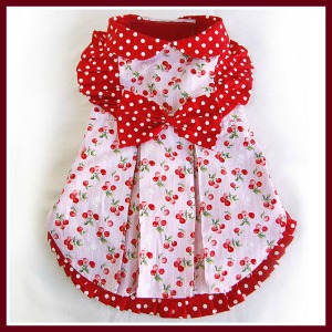 If you are looking for fashionable summer dog clothes than you have found the perfect spot. Thisnew fashion designer dress is a Cherry Polka Dot dress is the sweetest outfit there ever was. Imagine you little girl prancing around in this specially designed dress and being the envy of all the crowd. Don't settle for off the rack clothes when you can have this new fashion designer dress at the same cost. Is your baby girl the light of your life? Well, why not spoil her with the cute dog clothes eveyone wants. You will be hard pressed to find anything cuter than dogs in clothes with style. This red and white dress is perfect for those summer strolls down Main Street.